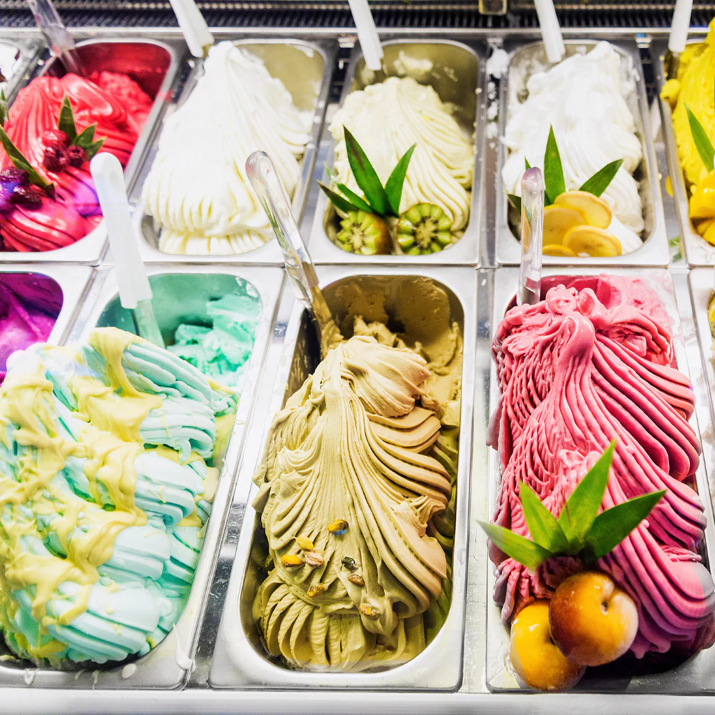 Завершальною крапкою вашого маршруту на день має стати джелато. Справжнє італійське джелато відрізняється від звичайного морозива меншим вмістом жиру, вищою щільністю та нижчою температурою зберігання, що дозволяє краще відчути смак.